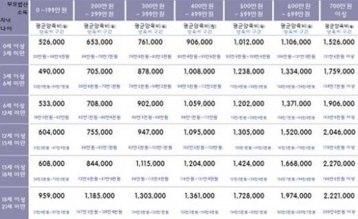 애 키우는데 얼마나 드는지 비용산출해 보시죠.